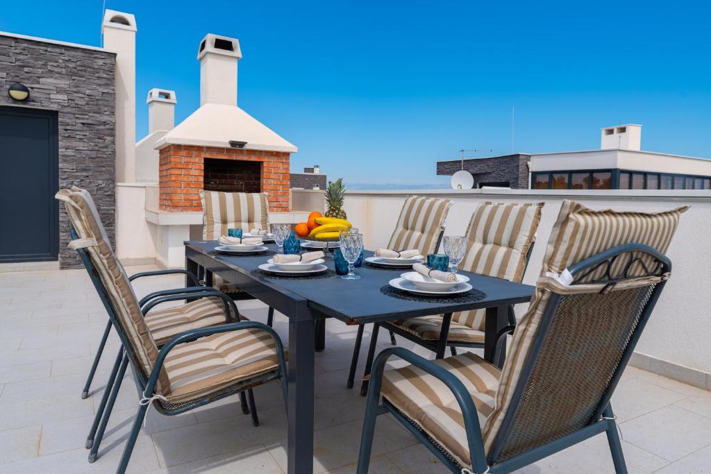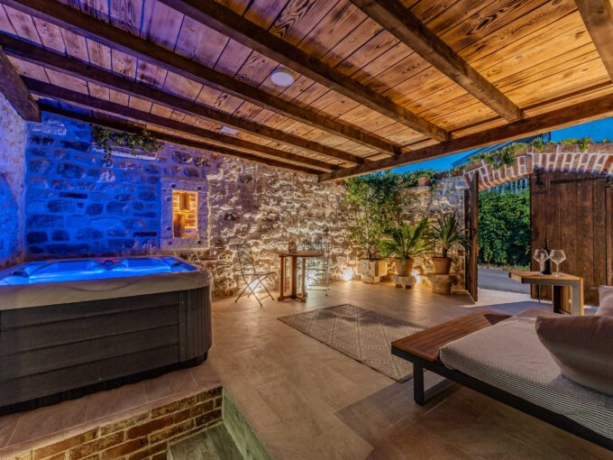 The private rooftop terrace is a true highlight, with a jacuzzi, barbecue, sunbeds, umbrellas, and an outdoor shower. Additional amenities include air conditioning, underfloor heating, home cinema, Wi-Fi, bicycles (including for kids), and free parking with a city parking ticket for Nin.