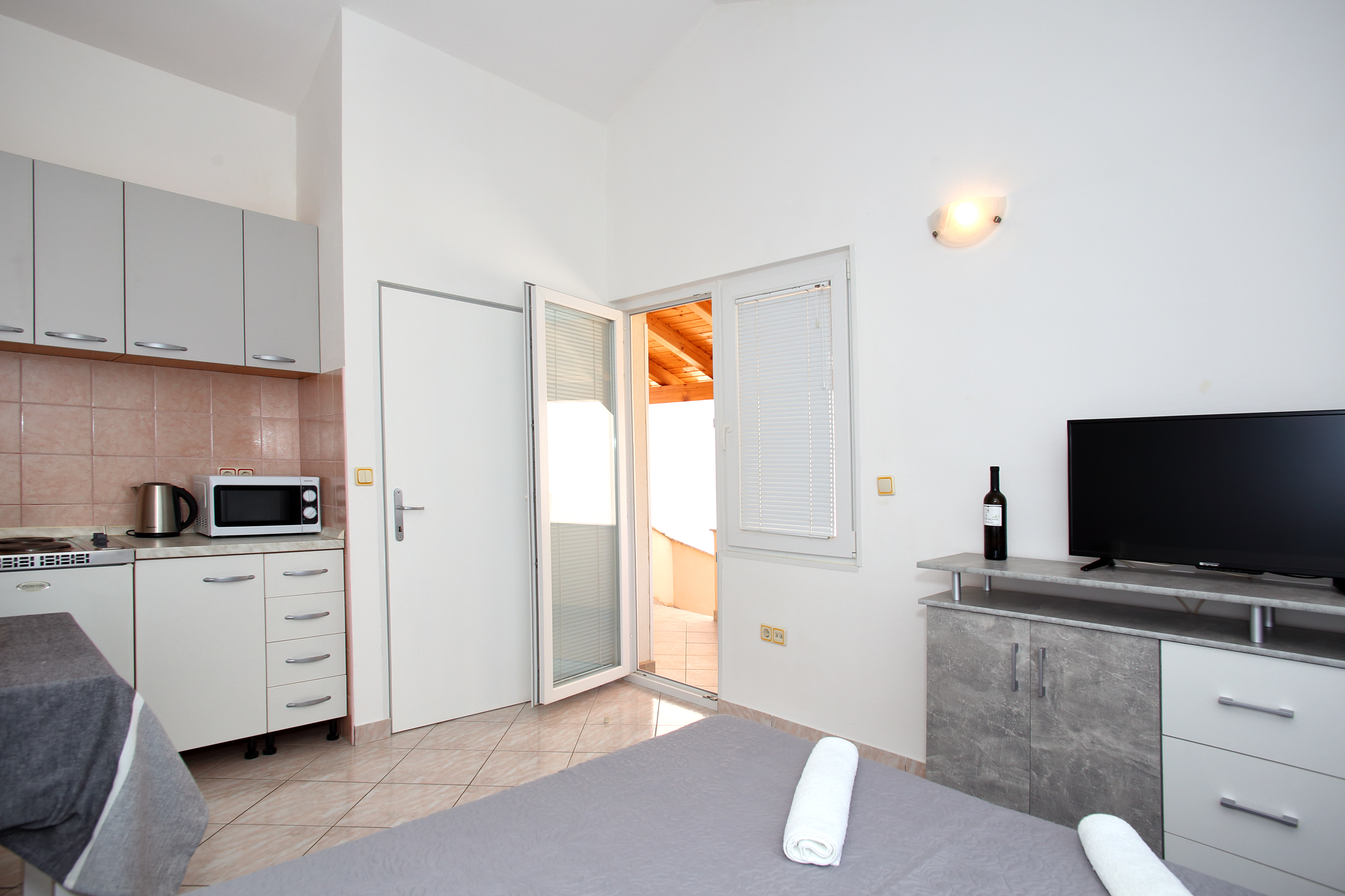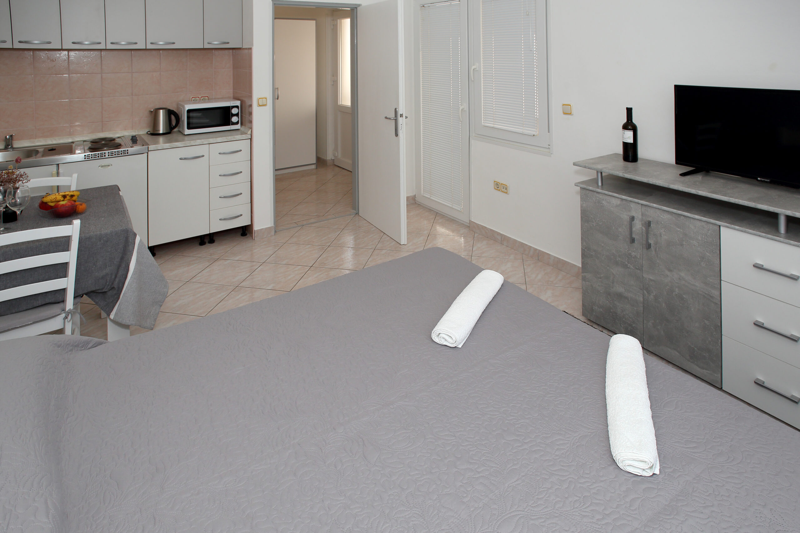 The apartments are located in a quiet part of Nin, close to the famous Queen’s Beach and the healing mud area. The apartments are fully equipped with air conditioning, TV, Wi-Fi, hairdryer, kettle, coffee machine, and bed linen and towels. A washing machine and baby travel cot are available on request.